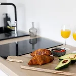 - ❓¿Hay una cocina disponible en este apartamento para uso de los huéspedes?Sí, este apartamento está equipado con una cocina completa y ofrece también un hervidor eléctrico, cafetera/tetera y menaje de cocina.